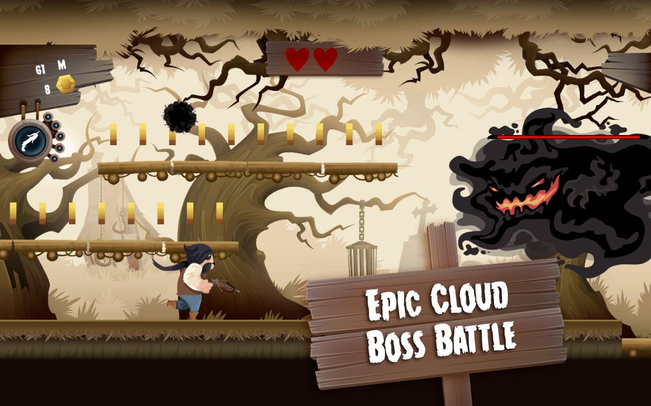 Beware the Boss "Cloud" that will try to kill you, so do not hesitate to shoot it because when you kill this boss, drop a few coins.